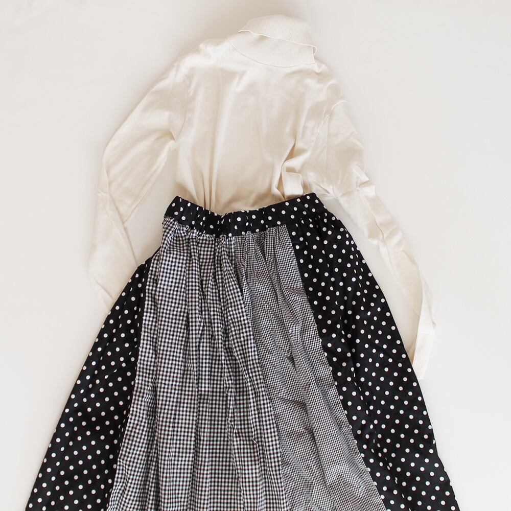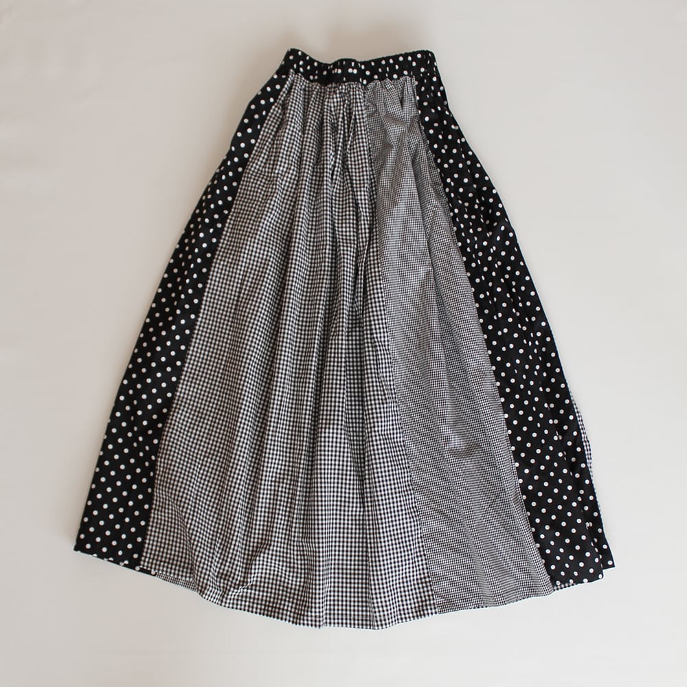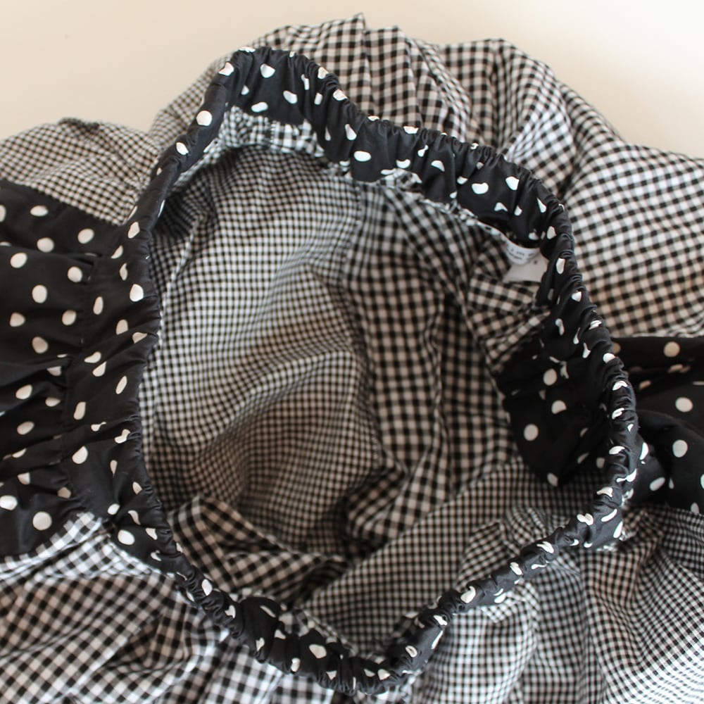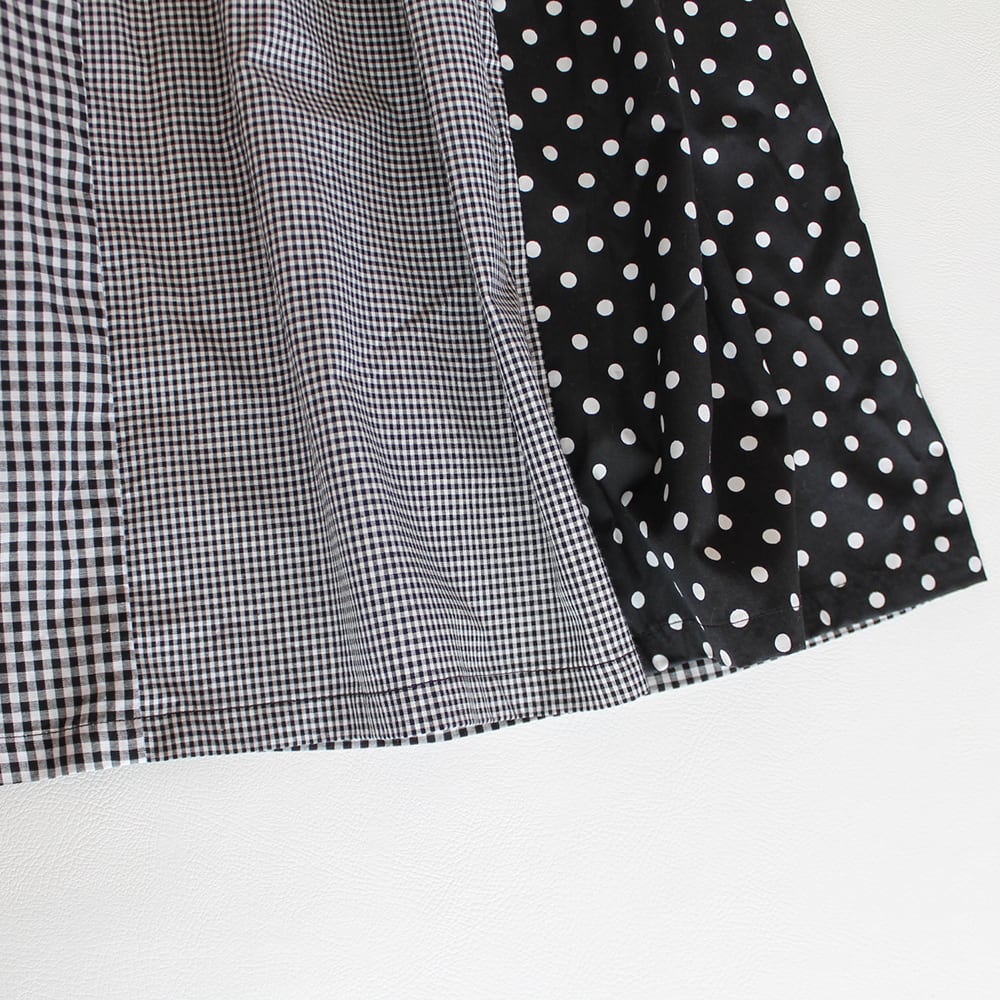 小さいギンガムチェック、少し大きいギンガムチェック、ドットを縦方向に組み合わせ、たっぷりギャザーを寄せたコットンのスカートです。ウエストはゴム仕様。お客様の方で調節していただけます。ふんわりギャザーで心も踊ります。 綿100% ポケットあり (裏地なし) ウエストゴム64~76cm スカート丈90cm お受け取りの時間のご希望がございましたら 備考欄にご記入ください。