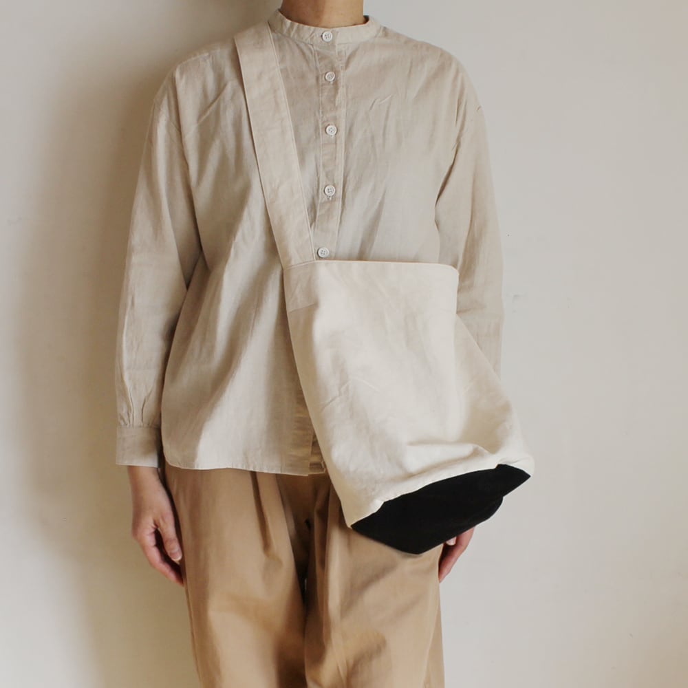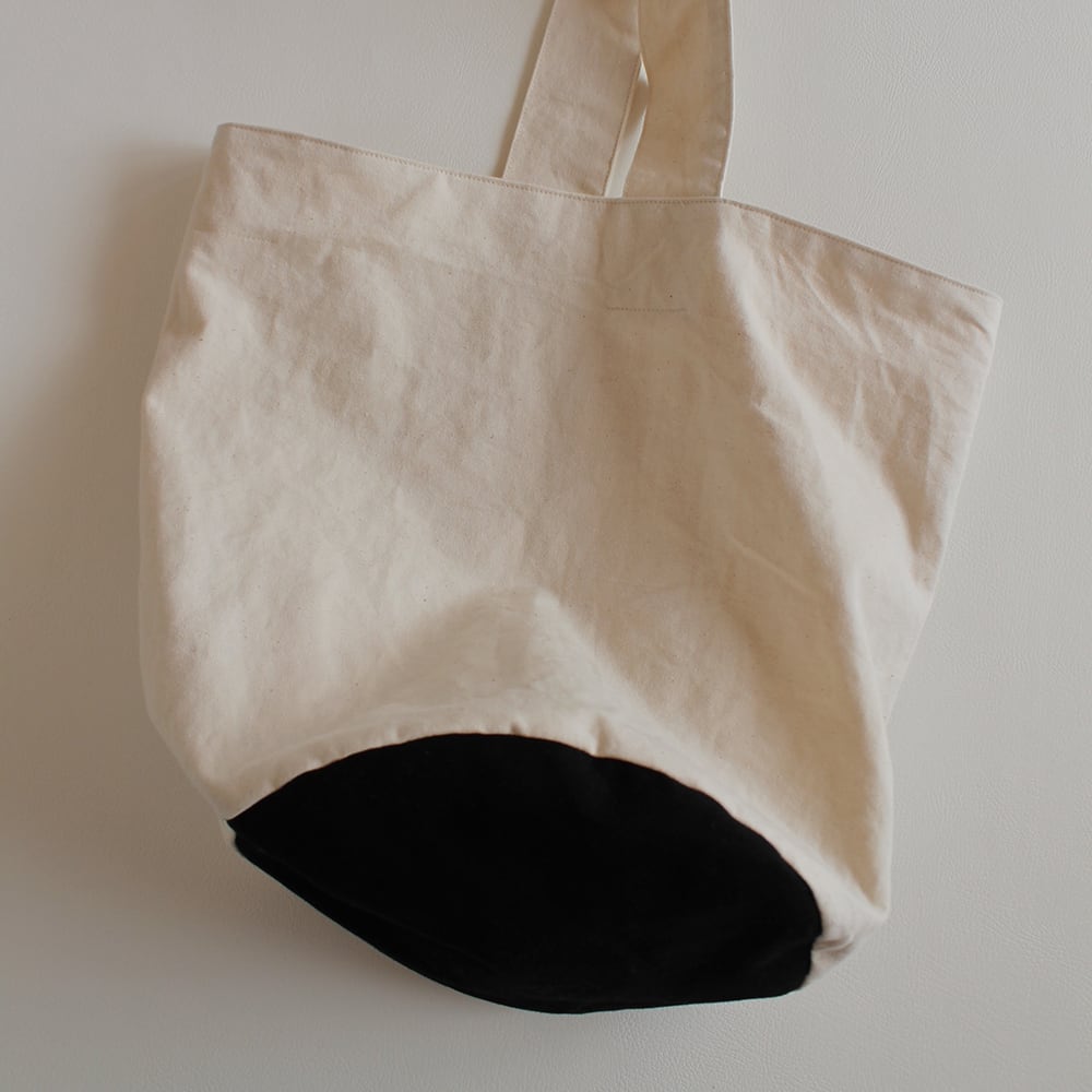 軽めの帆布を使用し、底には薄いキルト芯が入っていて、安心感をプラスしながらも、軽やかさも重視しました。