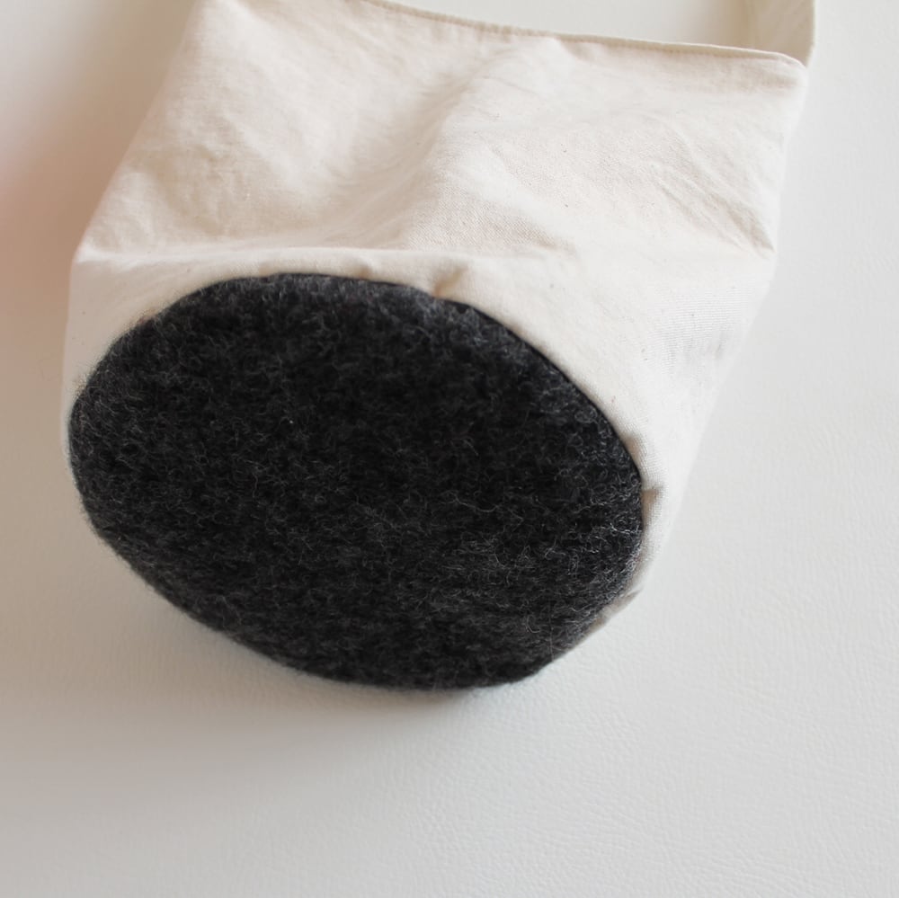 あまり重くならないように、軽めの帆布を使用し、底には薄いキルト芯が入っています。