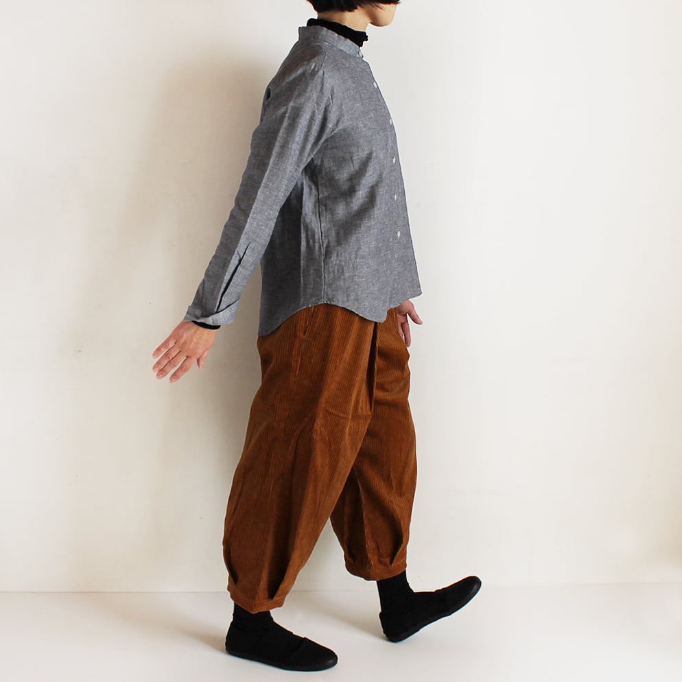 裾に大きなタックを入れ、ゆったりしたシルエットが特徴です。